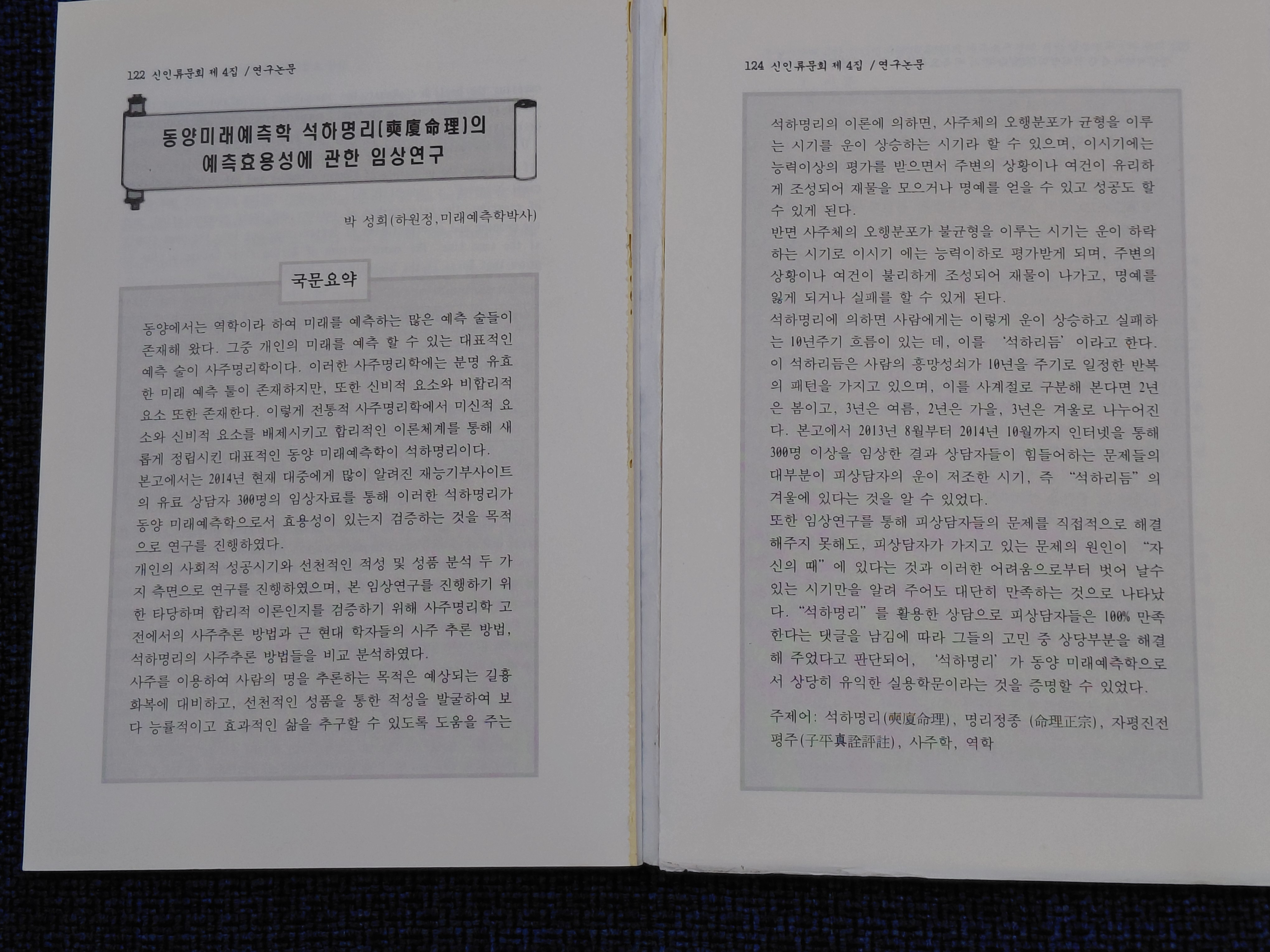 사주명리학을 연구하여 논문으로 발표합니다.