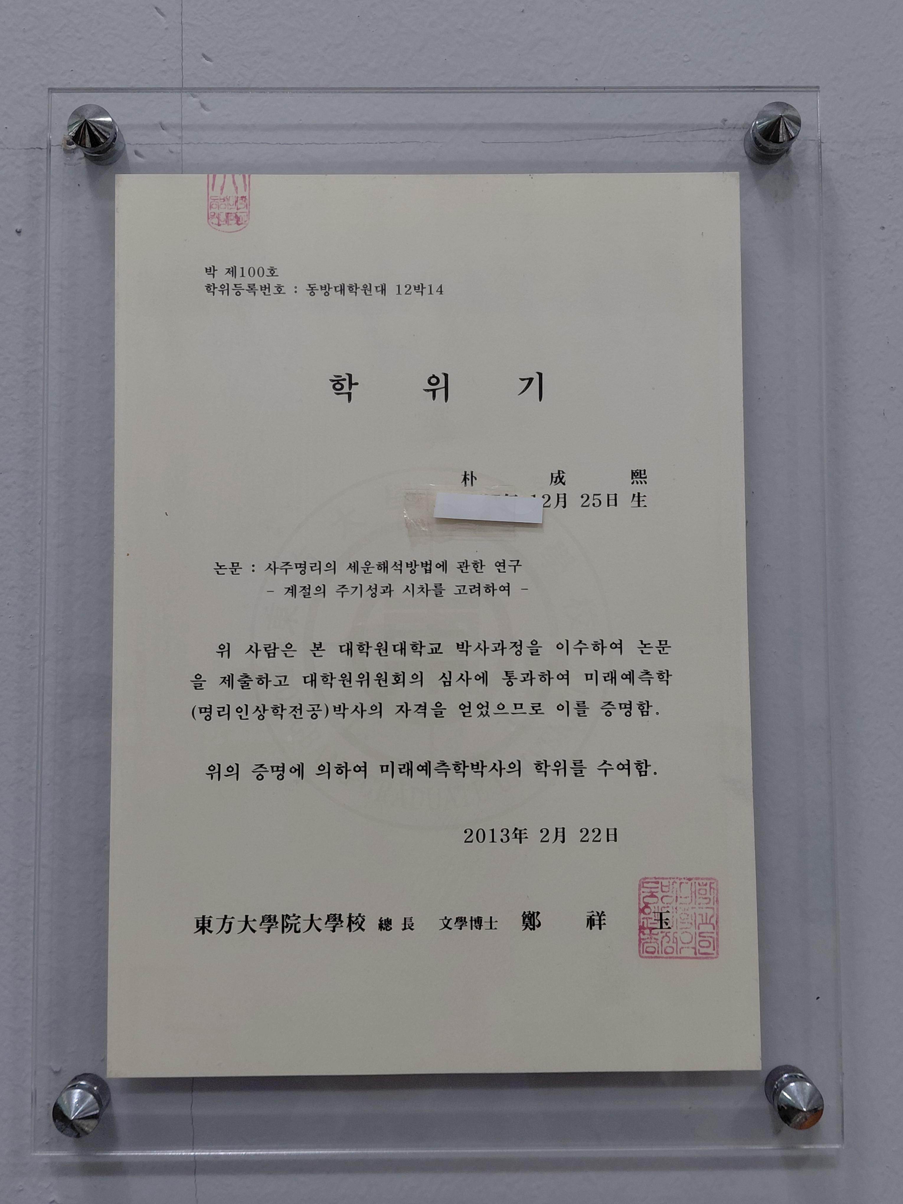 미래예측학박사, 사주명리학교수가.