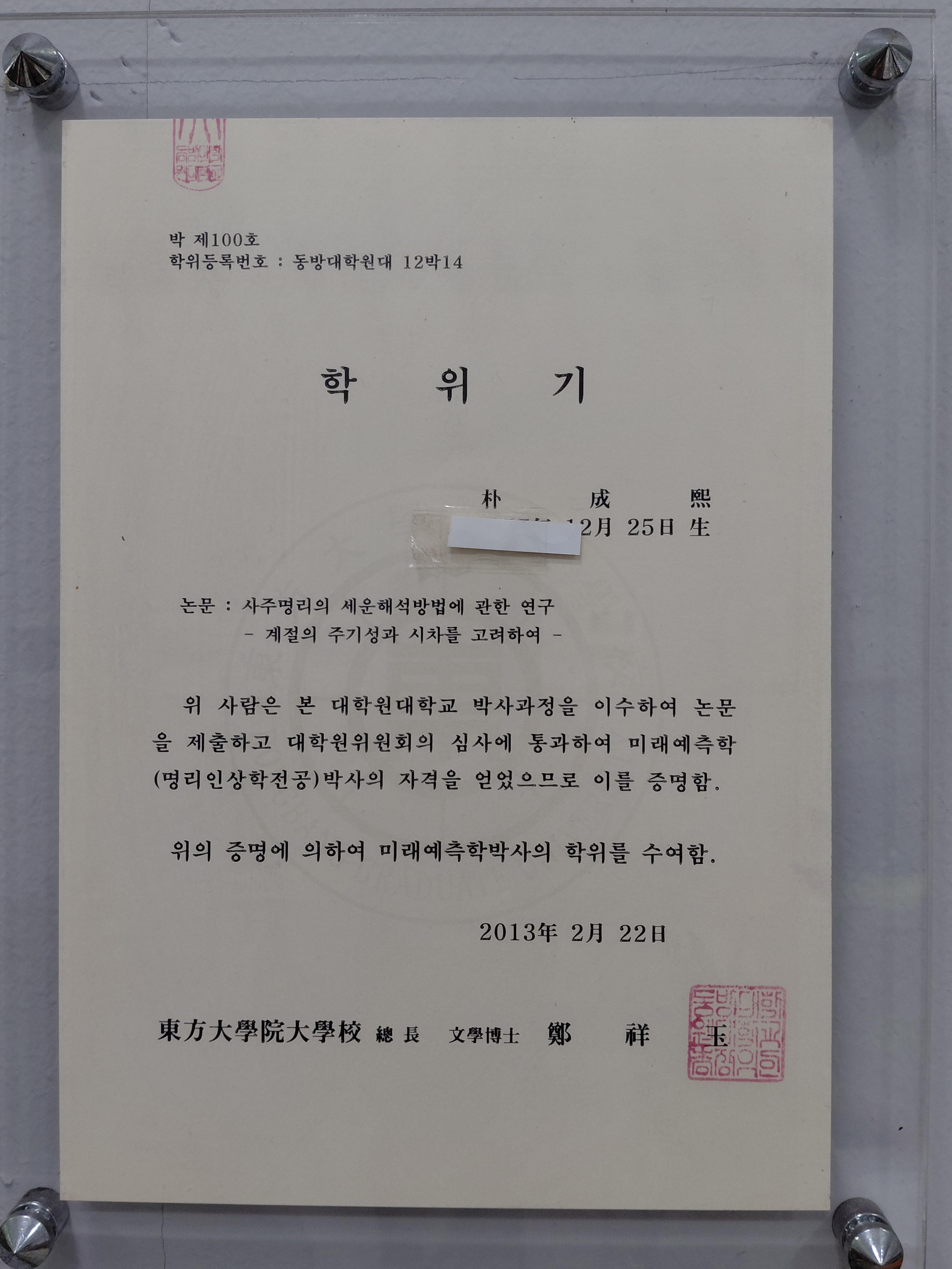 사주명리학을 전공한 미래예측학박사,