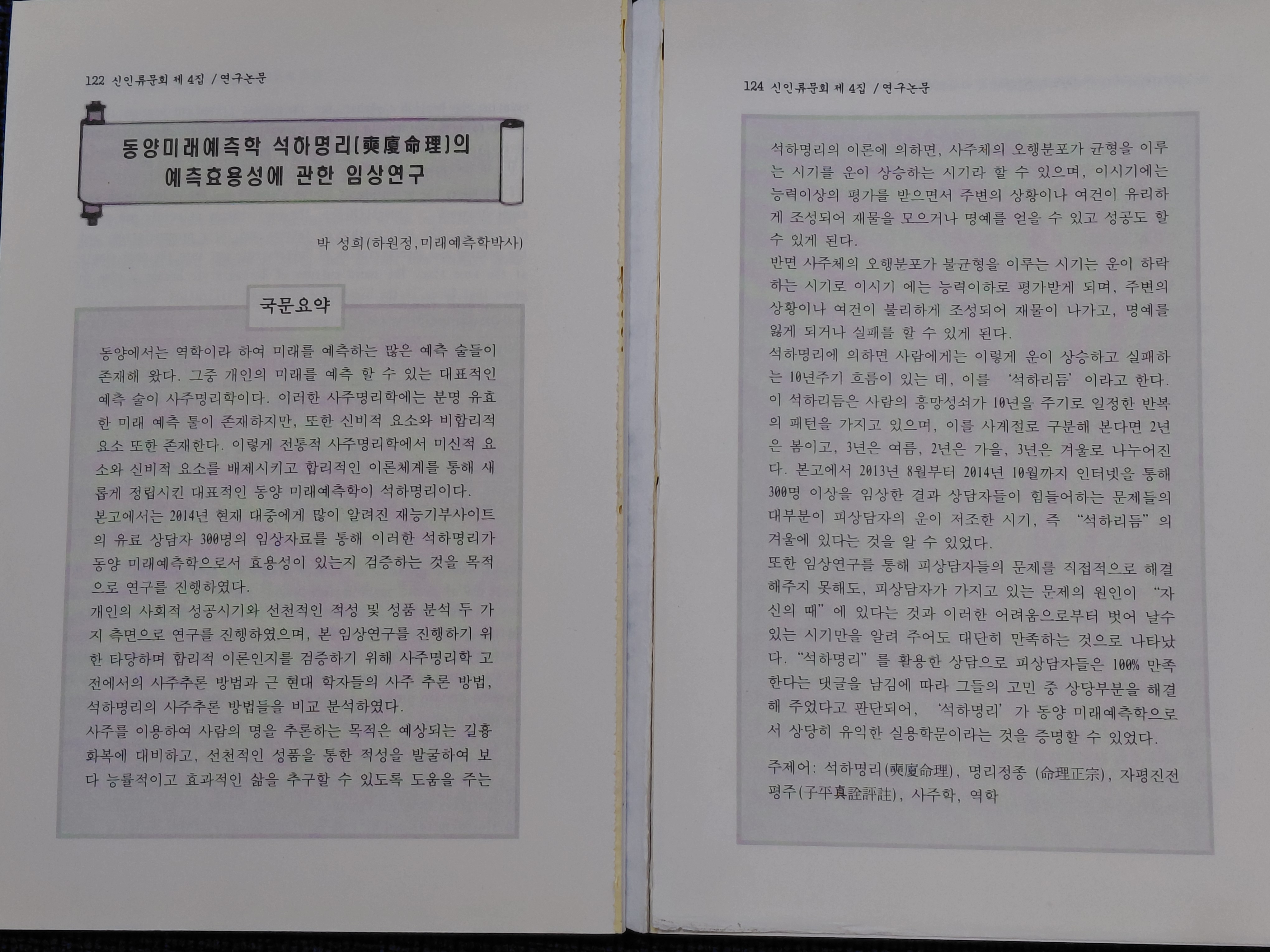 사주명리학을 연구하여 논문으로 발표합니다.