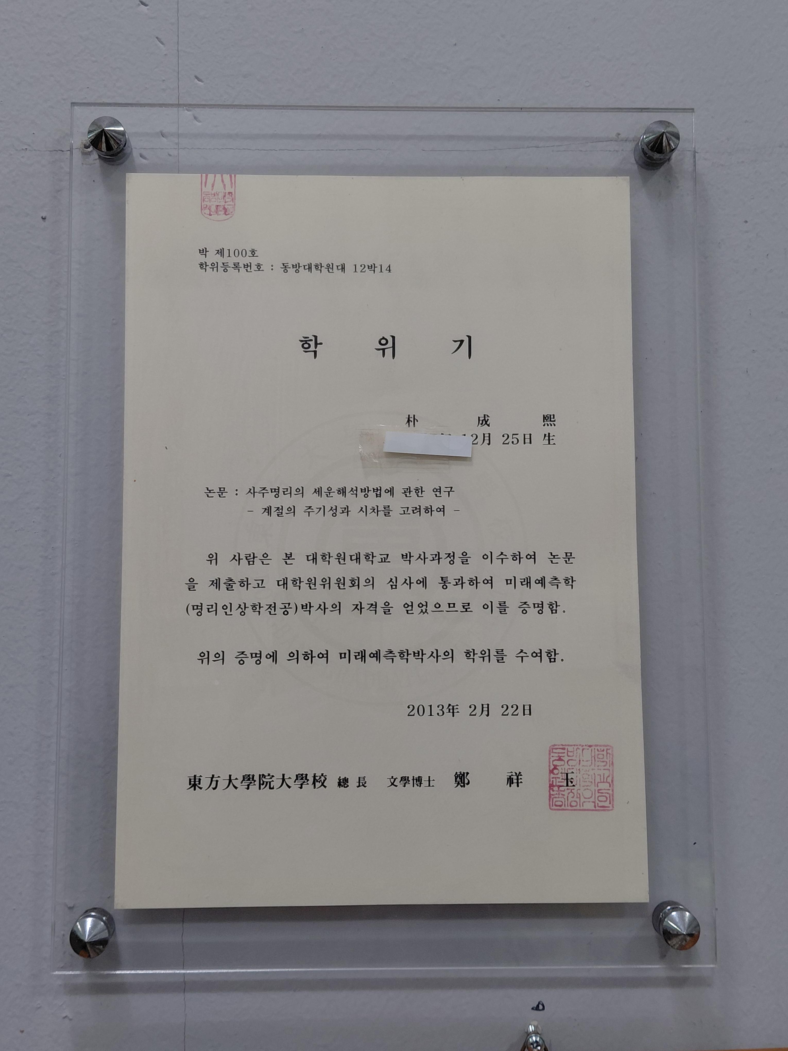 사주명리학을 전공한 미래예측학박사,